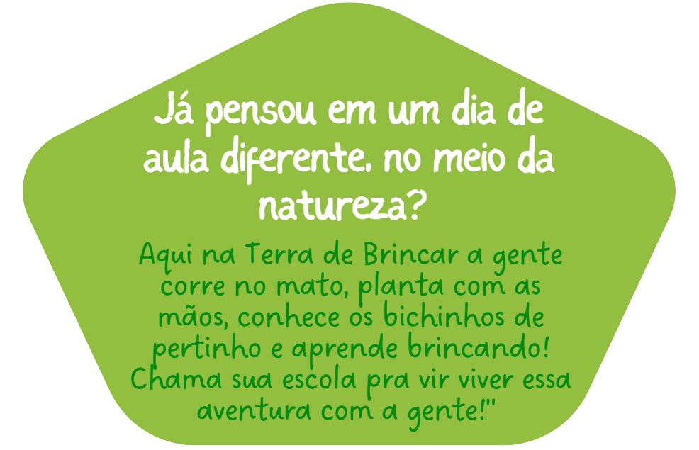 O Terra de Brincar também abre suas portas para as escolas que desejam oferecer aos alunos um dia diferente, cheio de descobertas e aprendizados ao ar livre. Mais do que um passeio, aqui cada momento é uma experiência viva que estimula corpo, mente e coração.